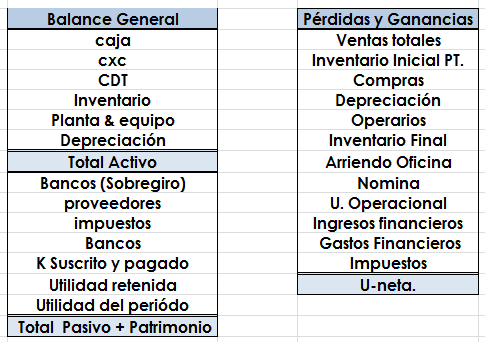Tengo este balance general y el estado de resultados pero no tengo muy claro cuales son los activos corrientes, pasivos corrientes, y utilidad bruta.
