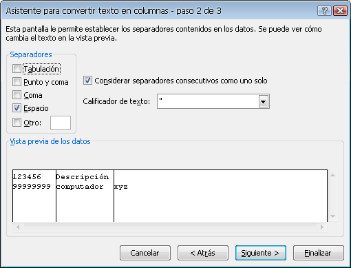 En la celda B2, se tiene el código y la descripción de un producto, se requiere extraer en c2 el código y en d2 la descripción