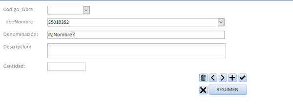 Tengo un formulario que se llama Planos, en él tengo los campos Nombre_Producto y Denominación. Estos dos campos vienen de la consulta CONSULTA-PRODUCTOS, la relación de estos dos campos es tal que así ; 1 - Dibujo, 2- Modificación... (donde 1 es el Nombre_Producto y Dibujo, Modificación es la Denominación.