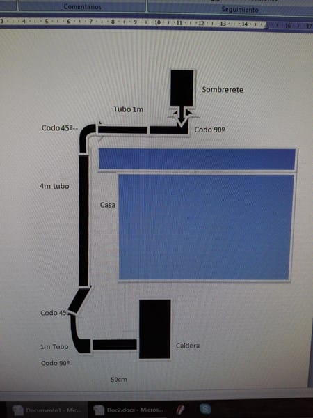 Tengo una Caldera de Gasoil Roca NGO 50, justo en la salida tengo 50cm de tubo, un codo de 90º, 1 metro de tubo y otro codo de 45º, a partir de ahí 4 metros de tubo hasta el sombrerete. Quiero variar el lugar donde esta el sombrerete, por eso la pregunta es la siguiente: