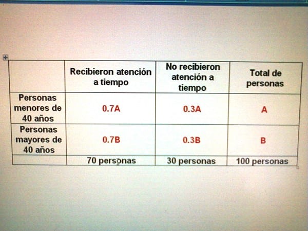 - 7A es el 70% del número de personas menores de 40 años.