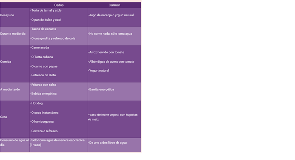 a. ¿Qué tipo de biomoléculas (carbohidratos, lípidos y proteínas) se observan prioritariamente en las dietas de Carlos y Carmen?