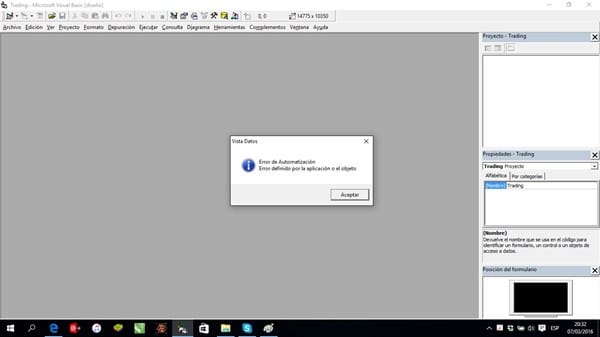Error de automatización (Vista Datos) al abrir el Proyecto