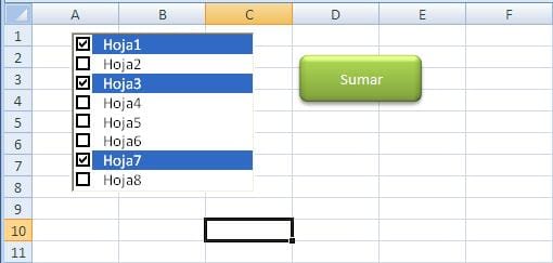 Pero quería que en la hoja "Parcial" se sumen los datos de las hojas que yo seleccionase.