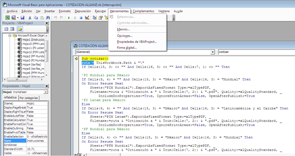 He creado un excel con macros, el cual con un solo botón genera un pdf. La ruta de este pdf supuestamente es la misma donde esté el excel. El problema es que no funciona en todas las maquinas.