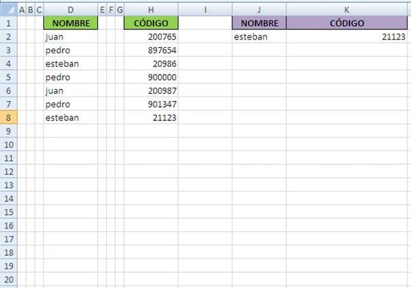 Tengo una hoja en excel donde voy listando nombres en la columna D y en la columna H un código asociado a esa oportunidad, el mismo nombre y otros se seguirán repitiendo numerosas veces, necesito una fórmula que me busque el último código que se le ingresó a "x" nombre, conozco la fórmula buscarv, pero no me sirve en este caso porque sólo busca el 1er dato. Por ejemplo si tuviera esta lista, y quiero buscar el dato pedro, quisiera que me trajera el número 901347. ¿Por favor pueden ayudarme? Muchas gracias