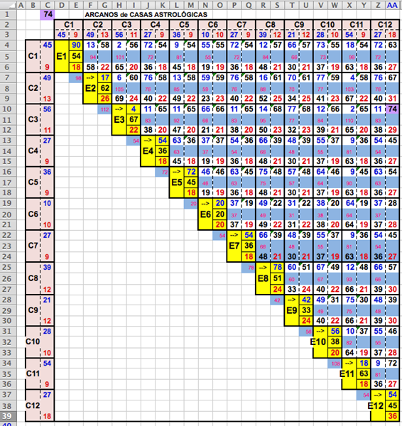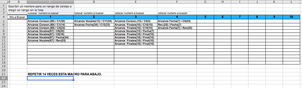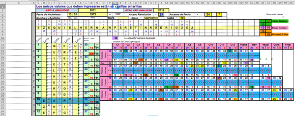 Los números a buscar se encuentran en tres lugares, dos en esta hoja que se denomina "1.INGRESO DATOS, ARCANOS" y otro en la hoja "7.Casa x Casa."