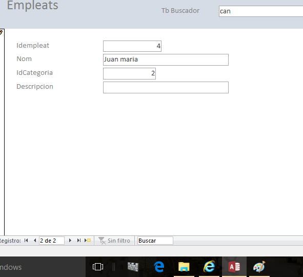 En access 2003, tengo un formulario, donde hay muchos trabajadores, para no ir buscando uno a uno, cree un buscador (que no es más que hacer un textbox y un botón, y hacer el select con el nombre escrito en el buscador), el problema viene cuando después de utilizar el buscador, no puedo crear nuevos registros.