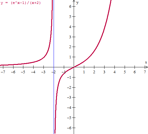 y=(e^0-1)/(0+2) = (1-1)/2 = 0