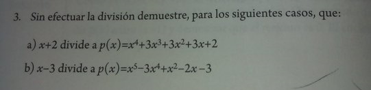 Sin efectuar la división demuestre, para los siguientes casos, que: