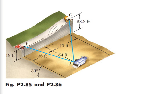 A fin de mover un camión volcado, se atan dos cables en A y se jalan mediante los malacates B y C como se muestra en la figura. Si se sabe que la tensión en el cable AB es de 2kips, determine las componentes de la fuerza ejercida por ese cable en A.