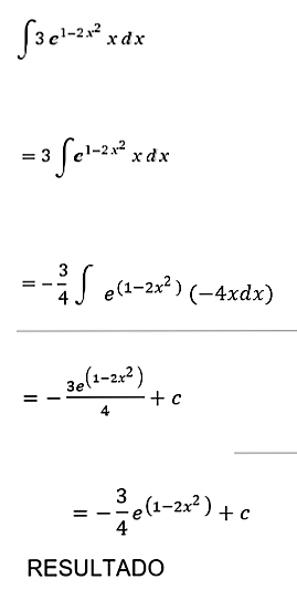 Cómo puedo hacer para resolver esta integral ∫〖3xe^(1-2x^2 ) 〗 dx