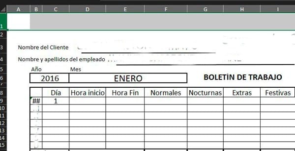 Tengo esta hoja, con dato "1" en c9, quiero que si b6("2016"), del boletin=c3(tabla coloreada), y