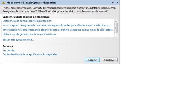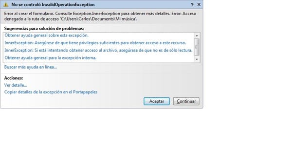 Para llenar un TreeView con carpetas del explorador, estoy utilizando un procedimiento extraído de la página oficial de Microsoft, y funciona perfectamente siempre que deje el path del DirectoryInfo que viene por defecto ("../.."), el cual extrae archivos desde una carpeta que cuelga de “Mis documentos”.