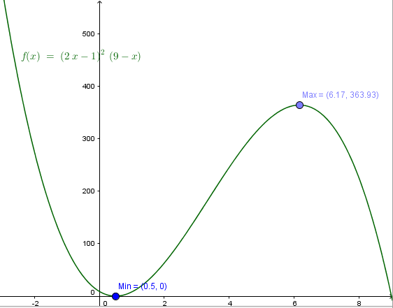 Considera la función, f(x)=(2x-1)^2 (9-x) .Determina lo siguiente: