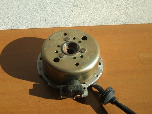 Los que no se alimentan de la batería, además de la conexión anterior (ruptor), se alimentan de otra bobina que proporciona al energía para la chispa, que tiene menos resistencia que la anterior y está situada en el interior de alternador. Es fácil distinguirla de los otros bobinados que alimentan las cosas eléctricas (luces, o la carga de la batería) porque tiene más vueltas de hilo fino.