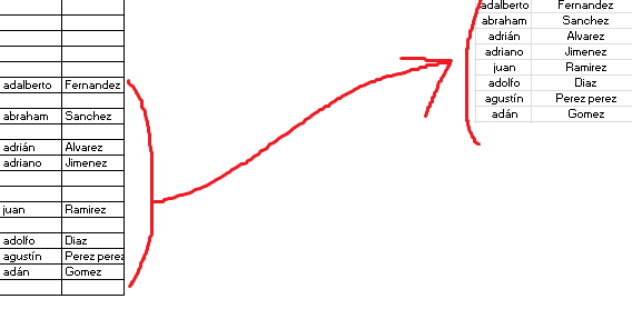 Utilizar Fórmula en excel para extraer datos de celdas no vacías y ordenarlos
