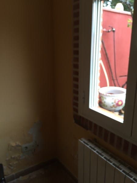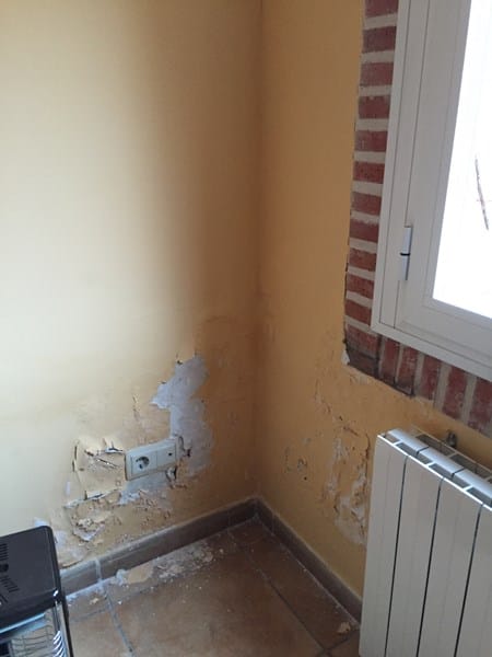 Hicimos obra en el garaje y sacamos una habitación hacia el jardín (es un adosado vpo). Los que hicieron la obra tuvieron que volver porque cuando llovía mucho me entraba humedad y aparentemente lo arreglaron, hasta que volvió a llover. Vivo en Madrid y el problema es que lo arreglas en épocas secas y vuelve a aparecer en temporada de lluvias. Pusieron tela asfáltica en la pared que da al jardín porque estamos como a menos de un metro por debajo del suelo y pintaron el muro del jardín con pintura de esa roja. Ambos muros son de ladrillo visto. No obstante volvió a salir la humedad, en esa pared que está en contacto directo con el jardín y en la pared que hace ángulo recto con la misma y que es el muro de carga lateral que no está adosado puesto que mi casa hace esquina. Esta última zona es la más afectada. Posteriormente la ha vuelto a arreglar otro albañil pero que ha pasado lo mismo y cansada llamé a Murprotec. Según ellos hay dos problemas por un lado filtraciones y también capilaridad. Aunque yo tiendo más a filtraciones puesto que la humedad del muro lateral no viene desde abajo sino que se inició a la altura del enchufe que hay en la pared y que es más o menos la altura a la que llega la tierra por fuera.