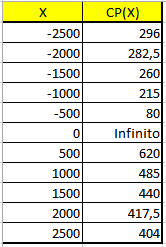 Para analizar el comportamiento de la función de costo promedio debes llenar la siguiente tabla de pares ordenados y realizar la gráfica de la función de costo promedio.