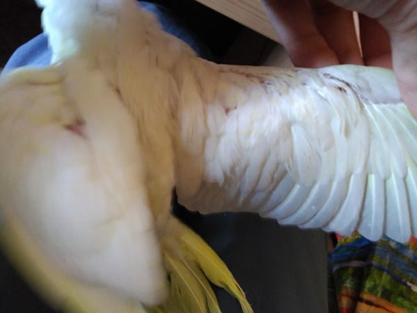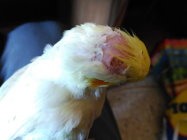 Tengo una ninfa de 2 meses, la cosa es que no tiene cresta, tiene algunas plumas pero no puede levantarlas, nunca lo he visto hacerlo, tiene una gran calva, sin rastro de cañones o plumas por crecer, y tiene una herida que supongo que se la hizo recién nacido, pues cuando lo compré con 22 días la tenia igual que ahora, como se lo explico... La herida es como si hubiera perdido en una porción pequeña una "capa" del cráneo por así decirlo, y se le ve la siguiente capa, pero no cicatriza ni nada, simplemente se le ve en ese hueco un crater y ya.