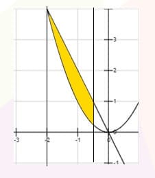 Calcular el área limitada por y=x^2 y por y =-2x , acotada por las rectas verticales x=-0.5 y x=-2 tal y como se muestra en la siguiente imagen: