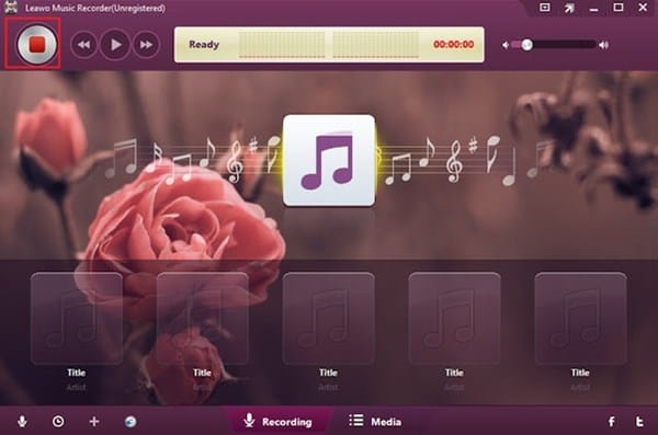 Si tiene una PC con Windows 7 o versiones anteriores, puede usar algún software de música para identificar canciones. En este caso, se puede utilizar Leawo Music Recorder. Puede identificar canciones basándose en una base de datos en red y luego guardar grabaciones en MP3 y WAV. Simplemente haga clic en el botón de grabación para comenzar.