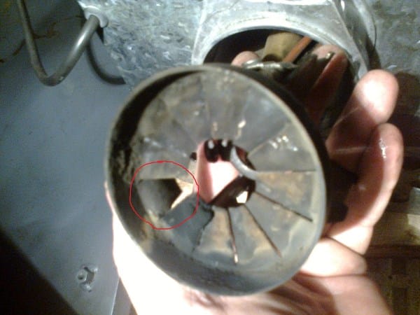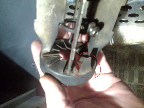 Bien, pues he desmontado el quemador de mi caldera para limpiarlo pues estaba dando fallos. Es un Domusa Domestic D4. Resulta que he visto que una de las aletas del estabilizador o reflector (no se cual es su nombre correcto, es la primera vez que me pongo con algo así) está doblada hacia dentro. Ver fotos:
