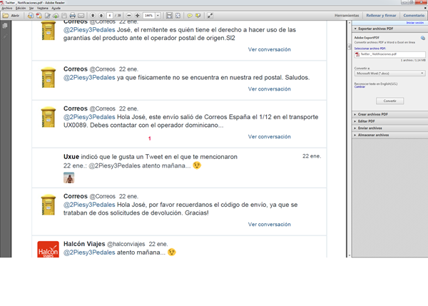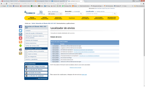 Me tildo de loco, porque esos casos no son oportunos para el cuerpo de la guardia civil y exponiendo mi caso en Redes Sociales haber si surge algún efecto de respuesta, pero por Twitter la única respuesta mas detallada fue solo el vuelo el cual salio el paquete, después de tantas veces respondiendo lo mismo.