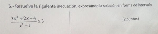 Resuelve la siguiente inecuación,expresando la solución en forma de intervalo