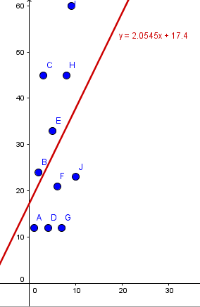 Basándote en los datos de la tabla determina la ecuación de la recta de mínimos cuadrados.