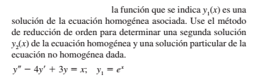 Determinar una segunda solución de una ecuación diferencial y una solución particular...