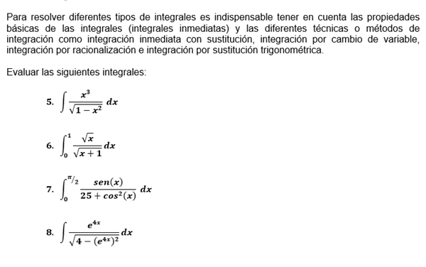 Estas integrales deben mandarse de una en una. El 6 es complicadísimo y lo haré con cambios hipérbolicos, con trigonométricos que la haga el profesor si quiere.