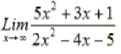 $$\begin{align}&\lim_{x\to \infty} \frac{5x^2+3x+1}{2x^2-4x-5}= \frac{\infty}{\infty}=\lim_{x \to \infty}\frac{5x^2}{2x^2}= \lim_{x \to \infty} \frac{5}{2}=\frac{5}{2}\\&\\&\\&\lim_{x \to 0}\frac{sen \frac{x}{2}}{x}=\lim_{x \to 0}\frac{sen \frac{x}{2}}{2 \frac{x}{2}}=\frac{1}{2} \lim_{x \to 0}\frac{sen \frac{x}{2}}{\frac{x}{2}}=\frac{1}{2}·1= \frac{1}{2}\end{align}$$saludos