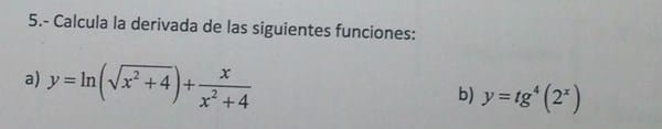 Calcula las derivadas de las siguientes funciones en este ejercicio.