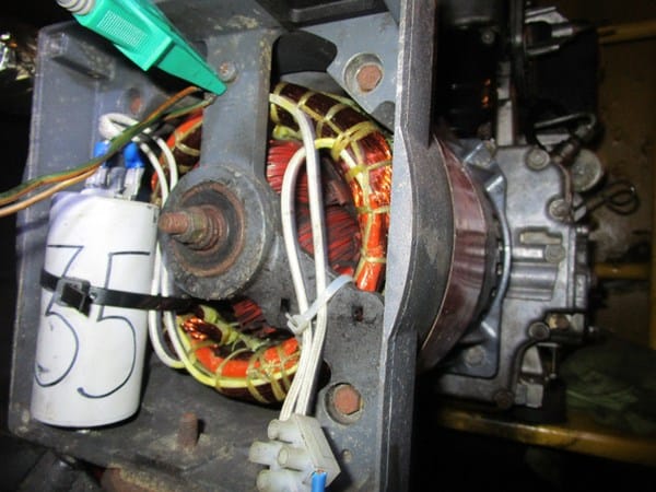 Iba a realizar la medida de aislación de un generador eléctrico, al abrir la tapa me encuentro que del alternador salen solo cuatro cables en cordones de color blanco, dos de ellos iban conectados a un aparato que en la parte de afuera tiene un numero "35" y los otros dos cordones blancos (que debiesen ser Fase y neutro) iban conectados a una regleta de conexión que alimentaba a dos enchufes con la cual va hacia la carga.
