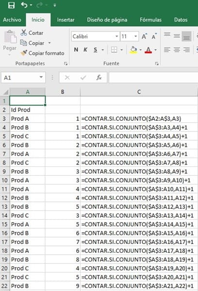 Tengo una columna de exel con valores repetidos pero no se como contar esos valores y dejarlos con una numeración secuencial de acuerdo a la cantidad de veces repetidas