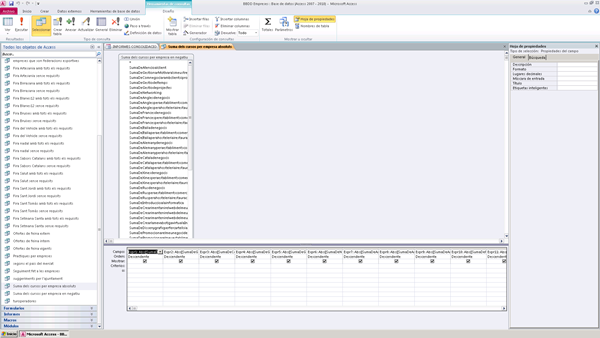 Tengo una duda con una consulta que he echo. Tengo que hacer una consulta sobre cuantos cursos quieren hacer las empresas. Cuando la hago pongo que se sume. Y cuando la ejecuto me sale en negativo. Aquí es el primer problema que quiero que salgan sin el negativo. Y cuando hago el informe me sale un error en según que campos. El error es el siguiente: