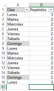 Tengo esta tabla y lo que necesito es que los días que viene repetidos me los junte en un mismo día y me diga cuantos repetidos tengo osea que solo diga en este caso: