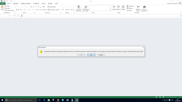 ¡Gracias! Ya cambie lo pase a xls y ya no hace ese error al abrirlo solo lo siguiente: