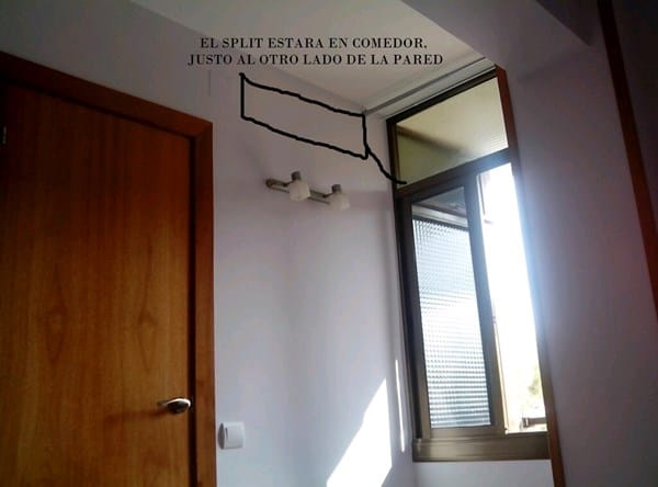 En breve me instalaran el aire acondicionado en mi vivienda. Hay solo un par de metros del split al aparato exterior, de taladraría pared y se pasaría a la habitación contigua de allí hacia el balcón. Tras consultar con un experto en instalaciones, me informa que debido a lo complejo de la situación para pasar los conductos del aparato interior hacia el balcón donde ira situado el aparato exterior la mejor opción esta en proceder a sacar un cristal que tengo en la parte superior de la ventana el cual es fijo, llevarlo a cortar y volverlo a colocar. (Ya que la ventana llega justo a los laterales de la pared lado izquierdo y columna lado derecho, sin contar que llega justo al techo)Yo también veo que es la opción más "limpia" y la forma más rápida de pasar ese conducto hacia fuera, pero me da miedo que el cristal se rompa. (¿Compre un cortacristal para hacerlo yo misma) pero como no entiendo del tema como me aconsejáis cortarlo? ¿En diagonal? ¿Y haciendo hueco en forma triangular?. ¿Y cómo relleno el trozo que quede libre sin tubo? Entrara el aire del exterior pero no se como debo tapar el sobrante..¿alguna idea? Os adjunto unas fotos para que os hagáis una idea.