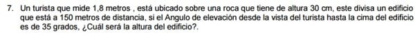 Un turista que mide 1,8 metros , está ubicado sobre una roca que tiene de altura 30 cm, este divisa un edificio