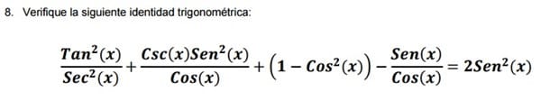 Buenas noches amigos de todo expertos debo verificar esta identidad y encontrar su error si lo hay y de igual forma comprobar en geogebra
