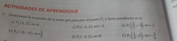 ¿Como resolver estos ejercicios de determinar la ecuación de la recta que pasa por el punto P1 y tiene pendiente de m?
