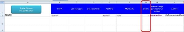 El formato del archivo es este, en la columna G se pone el número de correo.