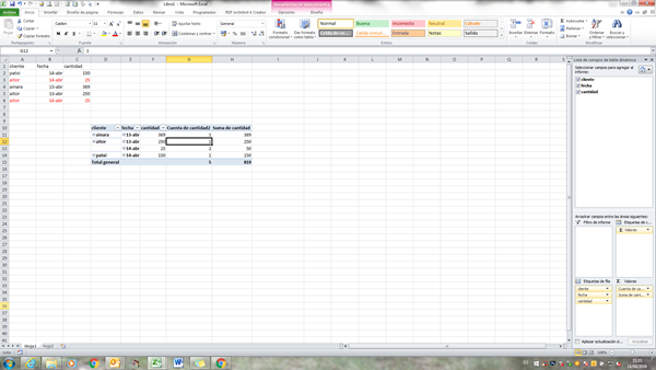 Por lo que me comentas, creo que no te hace falta una tabla dinámica. Una tabla dinámica se utiliza para que cuando tengas una gran cantidad de información puedas hacer agrupaciones, te haga sumas, promedios, cuentas, etc. Por ejemplo, quieres saber la cantidad total agrupada por nombre y día. Para esto sí te es útil una tabla dinámica, ya que las agrupaciones y las sumas te las hace automáticamente.