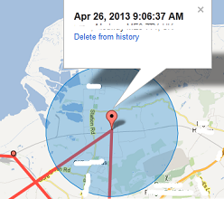 Si usted visita la página del Historial de ubicaciones en tu cuenta de Google en un PC, en https://maps.google.com/locationhistory/b/0 a continuación, debería mostrar una similar mapa y el listado de los lugares como se puede ver en el teléfono, pero también puede hacer clic en cada ubicación grabada para ver cómo (en)precisa que era. Cuando usted haga clic en el punto azul para una ubicación de Google dibuja un círculo azul alrededor de ella que muestra aproximadamente la (in)precisión de la ubicación de revisión.