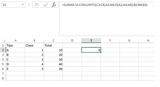 Al tener varios criterios que elegir en la misma columna Tipo lo que hago es, por ejemplo para elegir que sume el total del tipo A, C, E y solo la clase 1: