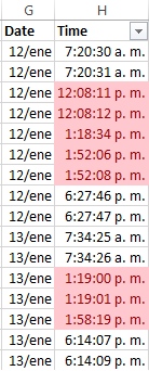Para ello se ordena la hoja por día-usuario-horas y al finalizar vuelve a dejar la hoja con el orden original.