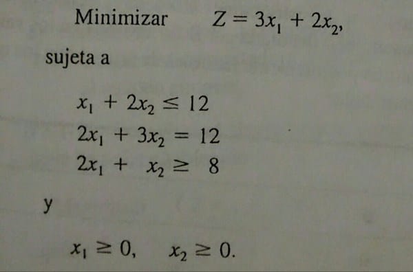 Ejercicio de investigación de operaciones, resolverlo por el método de las dos fases.