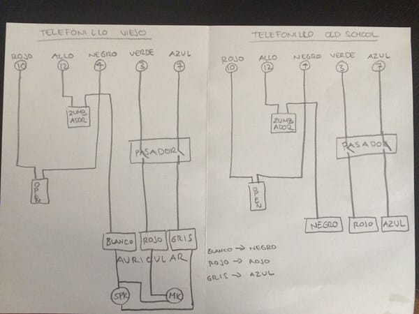 Hace tiempo cambié el telefonillo de mi casa que creo que es marca Auta (solo guardo lo de dentro y la placa es Auta 5-29) por un teléfono antiguo. Es una instalación de 5 hilos [Rojo (10), Amarillo (12), Negro (4), Verde (3) y Azul (7)]. He hecho exactamente el mismo diagrama que había en el telefonillo. El problema es que en mi casa hay dos telefonillos abajo. Uno en la verja y otro en el portal. El del portal funciona casi perfectamente (no se escucha abajo el ruido que hace el botón al pulsar); pero el de la verja no funciona bien, solo oigo el timbre cuando pulsan. Ni escucho su voz, ni me escuchan a mi, ni puedo abrir. Es la conmutación automática lo que no funciona. ¿Qué puede ser? ¿Un tema de impudencias o algo así? ¿Alguien sabría ayudarme?